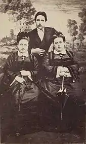 Rafael's son and Manuel's father, Benito Llanza y de Esquivel (1822–1863),[9] initially also served in the army.[10] However, he became known as high official of Ministerio de Instrucción Pública in successive Narváez governments,[11] member of intellectual elite and engaged in disputes with the likes of Pablo Piferrer, Joan Mañé i Flaquer, Francesc Pi i Margall, Manuel Milà i Fontanals and Manuel Tamayo y Baus. Himself he tried his hand in letters[12] and was also co-founder of l’Acadèmia Provincial de Belles Arts de Barcelona.[13] In 1849 he married Maria de la Concepción Pignatelli de Aragón y Belloni (1824-1858),[14] duchess of Solferino and condesa de Centelles, descendant to a family originating from Italy[15] and heiress to enormous land fortune in Aragon. Politically close to the Moderados[16] he probably aspired to political career, thwarted by his premature death.[17]
