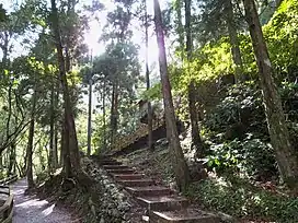 The forest spans over an area of 637 hectares at an elevation of 300–1,700 meters with an annual mean temperature of 19.9°C.[1] The northern part of the forest shares a border with Mount Beichatian (Chinese: 北插天山).