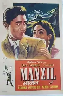 Manzil (lit.'Destination') is a 1960 Bollywood film directed by Mandi Burman. It stars the popular duo Dev Anand and Nutan in the leading roles. Krishan Dhawan, Achala Sachdev and K.N. Singh star in supporting roles. It was declared "average", taking the seventeenth spot at highest grossing, earning 760,000 rupees at the box office.[1]