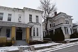 Maple Avenue Historic District is a national historic district located at Hannibal, Marion County, Missouri. The district encompasses 148 contributing buildings in a predominantly residential section of Hannibal. It developed between about 1850 and 1950, and includes representative examples of Federal, Italianate, Late Victorian, Colonial Revival, and Bungalow / American Craftsman architecture. Located in the district are the separately listed Ebert-Dulany House, Rockcliffe Mansion, and Eighth and Center Streets Baptist Church. Other notable buildings include Central School by William B. Ittner, Pilgrim Congregational Church, McKnight House, Cliffside, Hogg House, the McVeigh House, the Mclntyre House, the Settles House, and the Clayton House.[2]