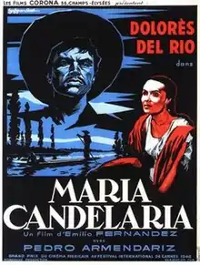 María Candelaria is a 1943 Mexican romantic film directed by Emilio Fernández and starring Dolores del Río and Pedro Armendáriz. It was the first Mexican film to be screened at the Cannes International Film Festival where it won the Grand Prix (now known as the Palme d'Or) becoming the first Latin American film to do so.[1] María Candelaria would later win a Silver Ariel award for Best Cinematography.