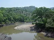 Site of the Rio Torola, visible in the back is the zip-line which residents used to cross the river.