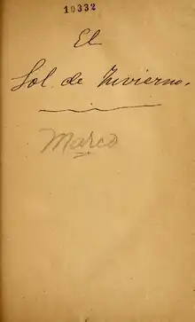 • El sol de invierno, 1863. (The novel was adapted for the stage by her husband.)
