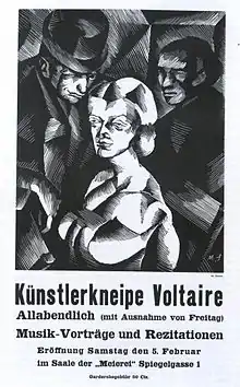 Poster for the opening of Cabaret Voltaire, lithograph by Marcel Słodki
