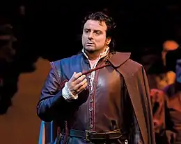 Giordani was born on 25 January 1963 in the small town of Augusta, Sicily. His father, a former prison guard, was the owner of a major gasoline station in the town, and his mother was a housewife.[1] He showed a talent for singing at an early age and took private lessons in Augusta as well as singing in a church choir. When he was nineteen, he quit his job at a bank.[2][1] He studied voice first in Catania and from 1983 in Milan[3] with Nino Carta.[2] Giordani made his professional operatic debut in 1986 as the Duke in Rigoletto at the Festival dei Due Mondi in Spoleto.[4][5] His debut at La Scala came two years later when he sang Rodolfo in La bohème.[3] He went on to sing throughout Italy and Europe, and in 1988, he made his American debut singing Nadir in Les pêcheurs de perles with Portland Opera,[5] a company with which he frequently appeared early in his career. Engagements with several other American opera companies followed, including San Francisco Opera, Seattle Opera, Los Angeles Opera and the Opera Company of Philadelphia. He performed at the Vienna State Opera first in 1992 as Sänger in Der Rosenkavalier by Richard Strauss, and appeared there in 14 roles in 72 performances.[4] Giordani made his Metropolitan Opera debut in 1993 as Nemorino in a Parks performance of L'elisir d'amore opposite Maria Spacagna as Adina.[6] His first performance on the actual stage at the Metropolitan Opera House was on 11 December 1995 as Rodolfo to Hei-Kyung Hong's Mimì with Carlo Rizzi conducting.[2][6]