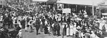 On 5 November 1915, the Queensland Recruiting Committee held a public meeting in the Exhibition Hall in Brisbane to initiate a snowball recruitment march. Snowball Marches—named for their ability to gather up men along the way—began with the 'Cooees' march from Gilgandra to Sydney in October 1915. The March of the Dungarees was the second snowball march, travelling from Warwick to Brisbane. Another Queensland snowball march was the Cane Beetles March from Mooliba to Cairns for Anzac Day in April 1916.[1]