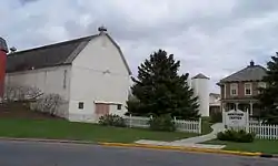It includes a two-story Italianate farmhouse with a hipped roof and with endboard pilasters.[2]