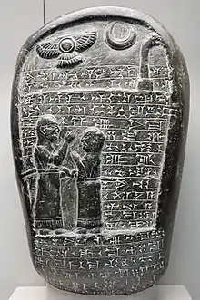 ![]() Kudurru of Adad-eṭir, mentioning a Marduk-balāssu-iqbi, a 9th century BC monument.[i 1] | |