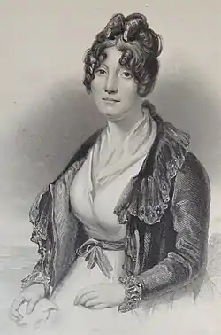 Margaret Chalmers (1763–1843) or Mrs Lewis Hay[1] was a lifelong friend of Robert Burns and had once turned down his offer of marriage.[3] She married Lewis Hay and upon his death in 1800 she emigrated to Pau where she died in 1843.[1] She corresponded with the poet between 1787 and 1792 although most of these letters were destroyed.[4] One of his last completed works,“Fairest Maid on Devon Banks”, may have been written with her in mind,[5] however her cousin Charlotte Hamilton is the stronger contender.