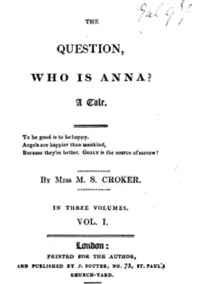 3. Croker, Miss M. S. (1818). The Question, Who is Anna? A Tale. J. Souter.