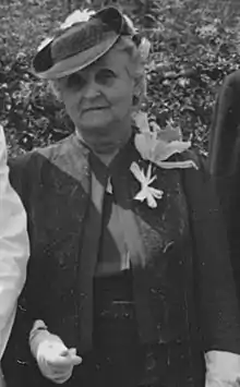 She died of a heart attack on February 13, 1942, in Shelby and was buried in Sunset Cemetery.[11][12][13] Her husband, who outlived her, wore a red rose or carnation in his lapel daily to honor her.[1] Upon his death, the Bess Gardner Hoey Memorial Fund was established as a trust for charitable, educational, and religious purposes.[1]