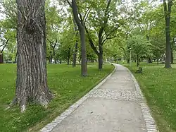 The park is named for Marguerite Bourgeoys, the French founder of the Congregation of Notre Dame of Montreal in the colony of New France (present-day Quebec). She has been declared a Saint by the Catholic Church.
