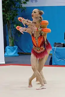 Marharyta Bartashevich (Belarusian: Маргарыта Барташэвіч, born July 6, 1990) is a Belarusian female acrobatic gymnast. With partner Viktoriya Mikhnovich, Bartashevich achieved 4th in the 2014 Acrobatic Gymnastics World Championships.[1]