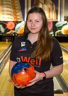 Maria Bulanova (born October 13, 1998) is a right-handed ten-pin bowler from Moscow, Russia, and is considered one of the top players on the Federation of Bowling of Russia. The youngest holder of the highest Russian's bowling sports rank - Master of sports of Russia of the international class. Russian national team (youth & adult) member since 2012. Champion of Russia 2013-2015, the first in Russian history individual[1] and team[2] gold winner in international youth championships. Fifteen time prize winner of European youth championships (3 gold, 6 silver and 6 bronze). Winner of European Champions Cup 2015. The first Russian athlete to win a Gold medal in an international adult championship.[3] She is a member of team Alliance (Nizhniy Novgorod, Russia) and a member of the Brunswick pro staff.