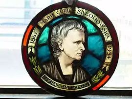 The Marie Skłodowska-Curie Medallion is one panel from a set of four created by Jozef C. Mazur. It honors Marie Curie and currently resides in the Polish Room at the University at Buffalo Libraries.