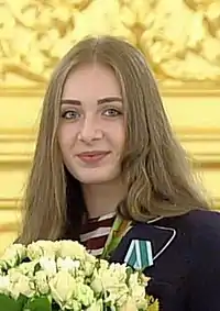 Maria Yuryevna Tolkacheva (Russian: Мария Юрьевна Толкачёва; born 8 August 1997) is a Russian group rhythmic gymnast. She is the 2016 Olympics Group all-around champion, a four-time (2015, 2017-2019) World Group all-around champion, the 2015 European Games Group all-around champion and three-time European Championships (2014, 2016, 2018) Group all-around gold medalist.