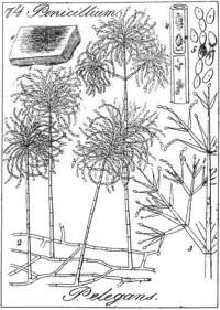 Original line illustration of Penicillium elegans (= Mariannaea elegans), source: ACJ Corda. 1838. Icones fungorum hucusque cognitorum. 2:1-43.