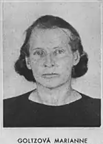 Marianne Golz-Goldlust (née Belokosztolszky: 30 January 1895 – 8 October 1943) was an Austrian-born opera singer and actress. She maintained a successful career in eastern Europe during the early 1920s, later moving to Prague, Czechoslovakia, and becoming a theatre critic. She married Jewish journalist Hans Goldlust in 1929. When Hans was arrested by Nazis in 1939, Golz-Goldlust secured his release, helping him and his other relatives escape to England. She stayed in Prague to help the Resistance, a dangerous task which she accomplished by hiding Jewish refugees, smuggling financial resources and information across borders, recruiting new resistance members, and holding resistance meetings at her home.