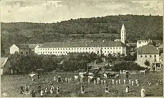 In the spring of 1870 work started on the foundation of the monastery and on 9 September 1870 the first bricks were laid. By Christmas that year the west wing was built, facing the Vrbas River.[6] Even though the work was not completed the Trappists moved into the new monastery on Christmas Eve, 24 December 1870.
