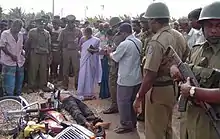 Mariathas Manojanraj was killed while he was travelling by motorbike to collect newspapers by a mine blast. He had earlier registered at the Sri Lankan checkpoint.[6] The Sri Lankan Army claims that he was a victim a mine meant for an Army Patrol however his relatives claim that the Tamil paramilitaries or the Sri Lankan is responsible for it .[7]