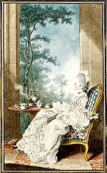 Portrait of Marie Charlotte de Boufflers, in a circa 1760 Louis Carmontelle portrait Musée Condé.