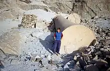 van der Veen at one of the columns left at Mons Claudianus, Egypt