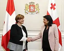 Georgian President Salome Zourabichvili meeting with Marina Carobbio Guscetti in her function as President of the Swiss National Council, in Tbilisi, 2019.
