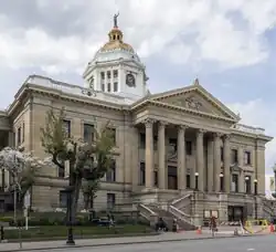 The Marion County Courthouse is a Beaux-Arts style building in Fairmont, West Virginia, in the United States. The courthouse was constructed from 1897 to 1900, and was designed by the architectural firm of Yost & Packard of Columbus, Ohio. Its dome is topped by a figure carrying the scales of justice.