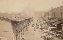 Land for the market place was given to the city by William G. Swan and Joseph A. Mabry.[3] Farmers from the surrounding area would bring their wagons to the Market House, where they sold their produce and wares.[4] During the Civil War, the Union Army used the Market House as a barracks and magazine.[5]: 23–25 Knoxville's post-Civil War population boom brought about continued development in Market Square, most notably the construction of Peter Kern's confections store (now The Oliver Hotel) in 1876 and Max Arnstein's seven-story department store in 1906. After the Market House damaged by fire in 1960, the remainder of the building was demolished, and Market Square was converted into a pedestrian mall.[1]