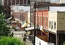 Market Square is a historic district and pedestrian mall located in downtown Knoxville, Tennessee, United States. Established in 1854 as a market place for regional farmers, the square has developed over the decades into a multipurpose venue that accommodates events ranging from concerts to political rallies, and has long provided a popular gathering place for artists, street musicians, war veterans, and activists. Along with the Market House, Market Square was home to Knoxville's City Hall from 1868 to 1924. Market Square was listed on the National Register of Historic Places in 1984.[1]