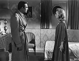 On their honeymoon cruise, Marnie resists Mark's desire for physical intimacy, revealing that she finds sex repellant. Mark initially respects her wishes, and tries to woo her, but after a few nights, they quarrel over Marnie's aloofness, and it is implied that he rapes her offscreen when he persists and she freezes without consent.[2] The next morning, she attempts to drown herself in the ship's swimming pool, but Mark saves her.