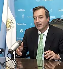 Martín Ignacio Soria (born 15 December 1975) is an Argentine lawyer and politician, who served as a Minister of Justice and Human Rights of Argentina from since 29 March 2021 to 10 December 2023.[1] Having previously served as a member of the Argentine Chamber of Deputies elected in Río Negro Province, Soria was designated to succeed Marcela Losardo following her resignation.[2][3]