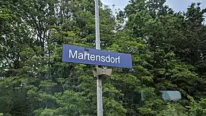 Martensdorf (German: Bahnhof Martensdorf) is a railway station in the village of Martensdorf, Mecklenburg-Vorpommern, Germany. The station lies on the Rostock-Stralsund railway and the train services are operated by Ostdeutsche Eisenbahn GmbH.