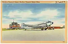 The airfield was built in 1942 as Naval Auxiliary Air Facility Martha's Vineyard (NAAF Martha's Vineyard) to support the training of naval aviators before their deployment to aircraft carriers in the Pacific Theater. Thousands of men received six weeks of intensive training there. The installation was renamed "Naval Auxiliary Air Station Martha's Vineyard" in 1945, placed in caretaker status in 1946, and ultimately transferred to Dukes County in 1959.[2]