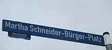 3. "Name gefunden – Platz wird Martha Schneider-Bürger gewidmet". Westdeutsche Allgemeine Zeitung. 17 June 2011.