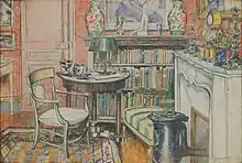 The marriage influenced both Massins and Verhaeren's artistic careers.[2] When Marthe entered Émile's life, the torments he manifested in his writing disappeared from his work and started to write several collections of love poems.[2] Massin stopped teaching and their life together became the subject of her drawings and paintings. She painted the garden where they met or their house, using different techniques such as oil paint, red chalk or ink. She made small studies of the pens and pencils on Verhaeren's desk. Verhaeren encouraged her artistic activities and continued to paint but she never exhibited her work publicly again.[2]