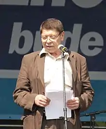 Martin Štěpánek (11 January 1947 – 16 September 2010) was a Czech actor, journalist and politician.[1] He joined Mirek Topolánek's First Cabinet as Culture Minister in September 2006, serving in the position until January 2007.[2] He was the son of actor Zdeněk Štěpánek.[3] In 1981 he emmigrated to Austria. In 1983 he moved to Munich, where he spent a significant part of his career working for Radio Free Europe.[4] In Munich he joined Czech language exile Masonic Lodge U tří hvězd, which moved to Czechoslovakia in 1990, today part of the Grand Lodge of the Czech Republic.[5] Štěpánek died in Prague in September 2010 due to suicide.[2]