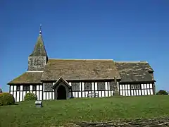 Its outstanding feature is the 14th-century timber-framed church of St James and St Paul, founded in 1343.[1] A plaque outside the church claims it is the oldest timber-framed church still in use in Europe.