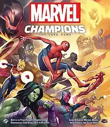 Marvel Champions: The Card Game is a cooperative, living card game published by Fantasy Flight Games. Players control decks representing heroes from the Marvel Universe, and work together to defeat a villain that is attempting to complete a "Scheme". Players can customize their hero's deck, and the game includes various modular encounters to customize villain scenarios. The core set was originally released in 2019. Expansions to the game are released in the form of hero decks, villain scenarios, or larger campaign boxes that include both hero and villain scenario content.