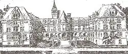 The Mary Andrews Clark Home was built by former U.S. Senator and Montana copper magnate William A. Clark, "as a perpetual memorial" to his mother, who died in Los Angeles.[6] Clark announced the gift in 1910 after acquiring a 350 by 180-foot (55 m) lot on top of Crown Hill,[7] a short distance west of Downtown Los Angeles. Clark said the structure to be built on the site would be a home for young women who work for a living, "where they can live in delight and comfort at a price which every woman can afford."[6] It was "four stories and basement. 190 x 132 feet, built around a court. ... exterior facing of pressed brick and roof of tile or slate. In addition to the parlors, assembly room, dining room, library, etc., there will be 130 living rooms, each of which will have lavatory and toilet.... cost $150,000."[8]