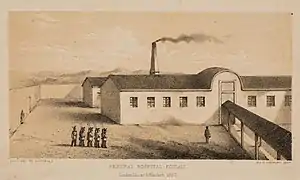 After Nightingale overcame her annoyance about not being consulted five days later she wrote the Sisters a letter welcoming them and inviting just five of the Sisters to join her at Scutari Hospital but not as nurses. Bridgeman took the letter to mean that she and her Sisters were released from their agreement with the War Office to provide nursing services at Scutari and on arriving in the Crimea in late January 1855 she arranged for her party to nurse at the Koulali General and Barrack hospitals near to Scutari.[1] When a cholera epidemic hit the Army in the Crimea that month Bridgeman and her Sisters immediately set to work. Having already had experience of nursing cholera sufferers in their native Ireland the Sisters began treating the sick as well as tending the wounded and dying from the year-long Siege of Sebastopol, spending their last six months in the General and Hut hospitals at the frontline.[4][8]