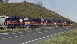 The Maryland Midland Railway (reporting mark MMID) is a Class III short-line railroad operating approximately 63 miles of track in central Maryland.[1][2] It was originally headquartered in the former Western Maryland Railway station in Union Bridge, Maryland: it has since moved to a new facility across from the old station.[3] The railroad has been 87.4% owned by Genesee & Wyoming since 2008, with Lehigh Cement (the largest shipper on the line) retaining a 12.6% interest.