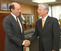 Masayuki Naoshima with the United States Ambassador to Japan John Roos October 21, 2009