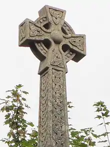 Sculpted by Alexander Macdonald and Co. of Aberdeen in 1883, a tapering 18-foot granite Celtic cross soars up from a rugged cairn above the river in Upper Carnoch.[1] Its design is based on the elaborate Gosforth Cross.[2] An annual wreath-laying ceremony is held at the Monument to commemorate those who fell in the massacre.[3]