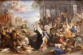 The Massacre of the Innocents is the subject of two paintings by Peter Paul Rubens depicting the episode of the biblical Massacre of the Innocents of Bethlehem, as related in the Gospel of Matthew (2:13–18). The first, measuring 142 x 182 cm, was painted after his return to his native Antwerp in 1608, following eight years spent in Italy.[1]