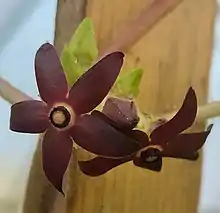 Matelea floridana, grown by Pat Mahon, shows the blooms occurring at most all new nodes along stem.