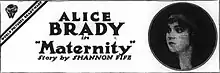 Maternity is a 1917 American silent drama film directed by John B. O'Brien and starring Alice Brady, Marie Chambers and John Bowers.[1] It was shot at Fort Lee studios in New Jersey.