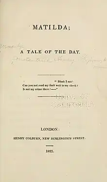 Matilda is an 1825 novel by the British writer and politician Lord Normanby, originally published in two volumes.[1] It was part of the emerging, popular genre of silver fork novels which focused on the fashionable British upper classes in the later Regency era, and was his first published work. He followed it with a second silver fork novel, the political Yes and No in 1828.