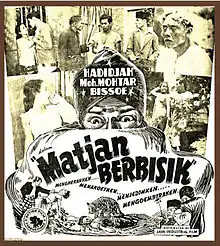 Matjan Berbisik was directed by Tan Tjoei Hock and produced by The Teng Chun for Action Film, a subsidiary of Java Industrial Film (JIF).[1] Tan had previously worked for The on Dasima in 1940.[3] Tan wrote the black-and-white film's script, while Mas Sardi handled music.[4] The title was derived from an Indonesian belief that a person could house the soul of a tiger: vicious, hungry, and dangerous.[2]