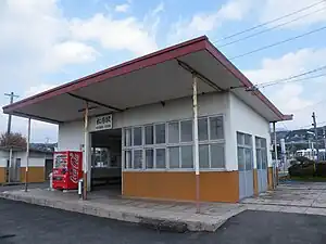 The station consists of two side platforms serving two tracks. A siding branches off the main tracks and runs in between the station building and the platforms. The station building, a modern steel-frame structure, is unstaffed and serves as a waiting room with an automated ticket vending machine. A level crossing provides access to the station platforms.[2][3][5]